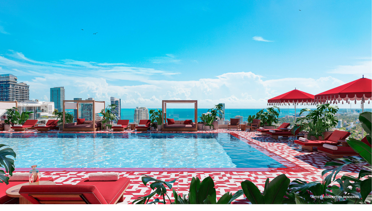 The residences provide stunning views of the Miami River, Biscayne Bay, and the iconic Brickell skyline. Each unit features 9-foot ceilings, creating an open and airy ambiance. Interiors are finished with imported porcelain flooring, adding an elegant, modern touch throughout. Residents will also enjoy the convenience of a keyless entry system and a premium Miele appliance package.